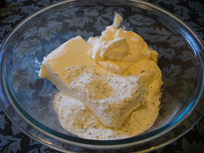 (2) In a medium-sized bowl, mix ranch dressing, cream cheese and mayo until smooth. Set aside.
