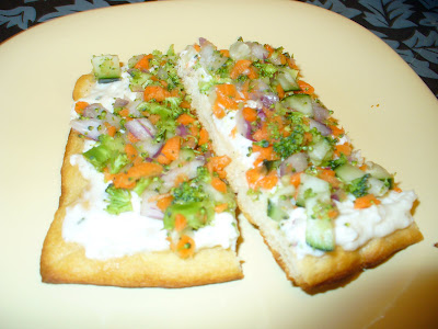 So I decided to whip up something healthy-ish (but still tasty) for the Superbowl party Karen and I were going to. I’ve made this dish for other parties and it’s always been a big hit. No one can resist pizza! And besides, what’s healthier than a big pile of raw vegetables?