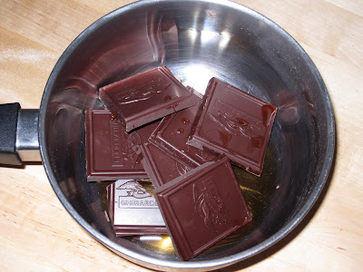 For both the cake itself and the frosting, the recipe called for chocolate to be melted with your choice of rum or coffee.  I didn’t have either, but I did have Kahlua.  I figured since Kahlua = coffee flavored liquor, I was actually covering both bases.  Unfortunately, this didn’t turn out quite as well as I hoped — the chocolate got clumpy once taken off the stove, and refused to stay liquid enough for mixing into the batter/frosting. I remedied this by stirring in about a tablespoon of heavy cream, and setting the pot back on low heat.
