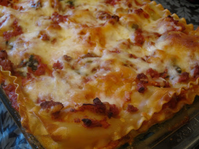 I was a little confused by the wording of the directions for this recipe. The top layer was supposed to just be ricotta cheese, sauce, and mozzarella cheese, but for some reason I thought that there should also be another layer of noodles on top of everything to close out the dish. I was mistaken. The noodles on top dried out in the oven and were hard and chewy, even with some extra cheese sprinkled over it. Next time I’m definitely leaving off the extra noodle layer.