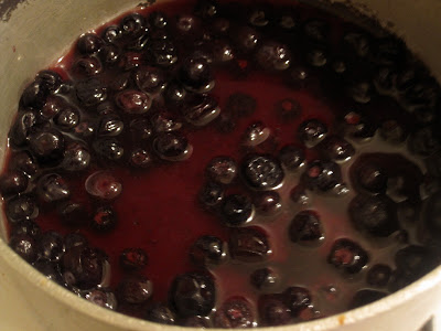 This recipe is super simple: it’s just a layer of shortbread that’s slathered with blueberry preserves and topped with cheesecake batter. I didn’t think that would look very pretty though (we eat with our eyes, too!), and there were some frozen blueberries taking up space in the freezer, so I syrup-ified them and tossed them into the cheesecake too.