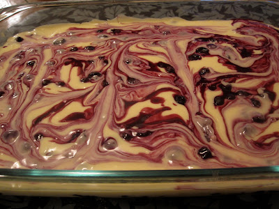 Pretty, right? Alright, so I went a little overboard with the swirling. I never know when to stop — I usually just keep right on dragging the fork through the batter until the colors look less marbled and more muddy. But I managed to exert a little self-restraint this time and stopped before the whole thing turned into a murky, pale-purple mess.