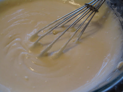 (3) While the shortbread is baking, beat the cream cheese until smooth, then add eggs, sugar, and vanilla. Set aside.