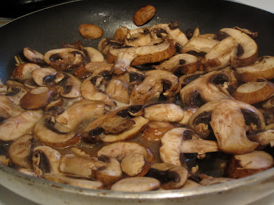 (3) Add mushrooms to skillet, making sure to spread them out evenly. Cook until soft and brown.