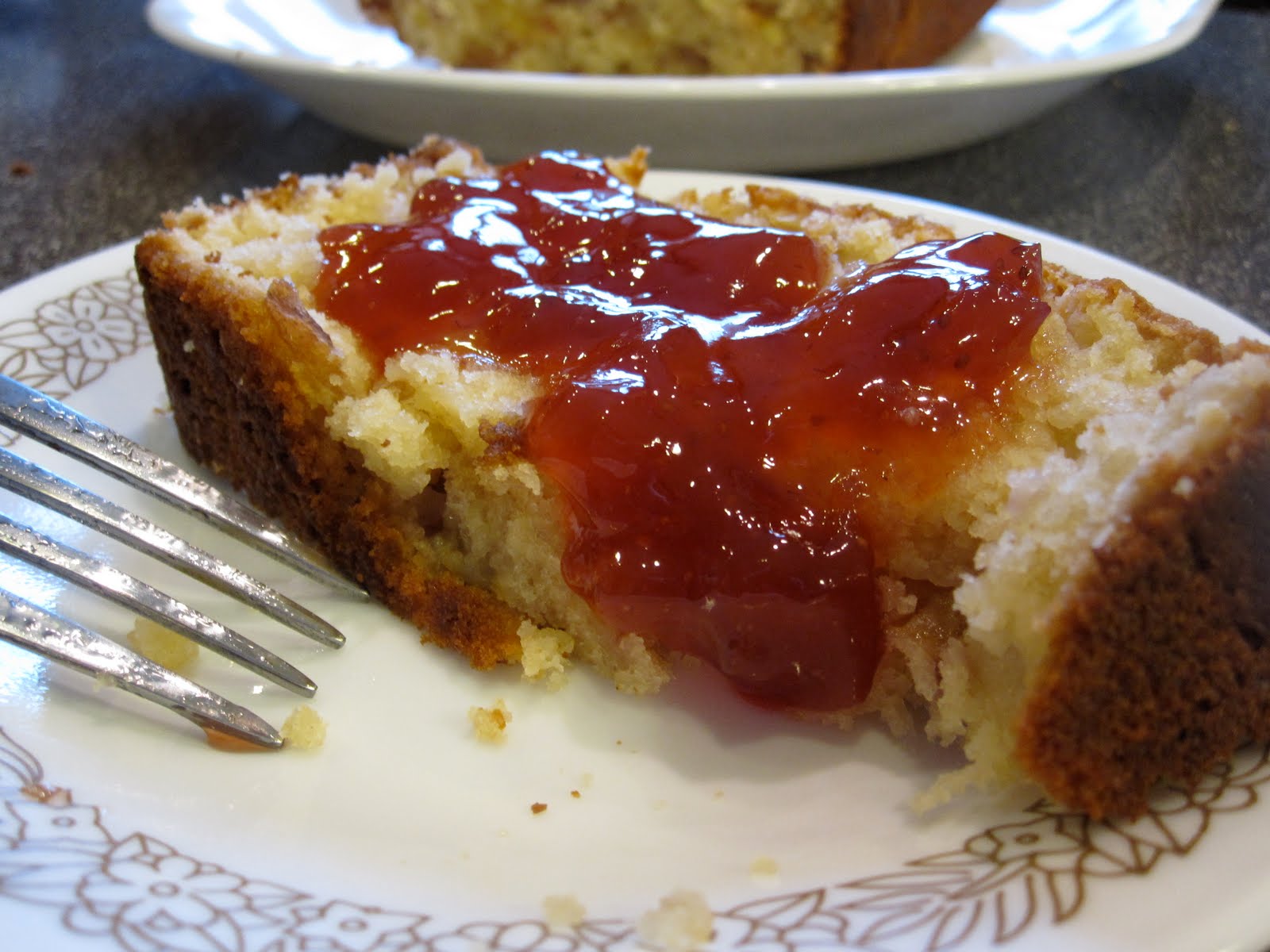 Unfortunately, the peach and cherry flavors weren’t as strong as I had hoped. I think next time I’m going to have to pick one fruit and stick with it. And, actual mashed peaches or cherry juice might do help. Even so, the bread was still very tasty. Moist, mildly fruity, just a little bit sweet, and good alone or toasted and slathered with some jam. Mmm.