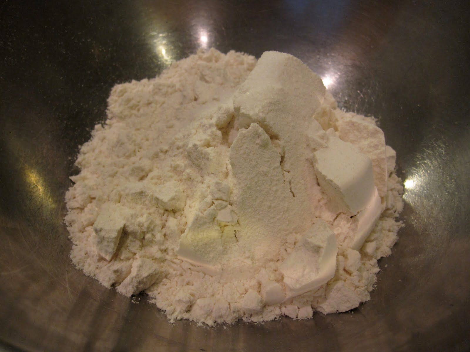 (3) In a small bowl, combine flour and salt. Cut in the butter until the mixture looks like course sand.