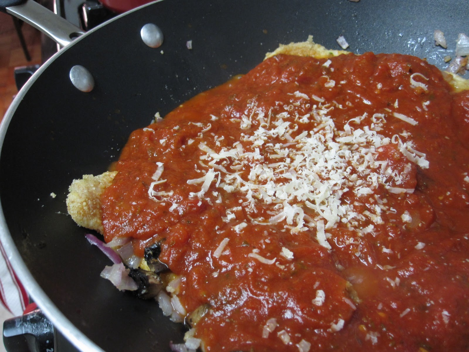 (6) Pour pasta sauce over breasts. Place cover on skillet and let everything cook for 15-20 minutes.