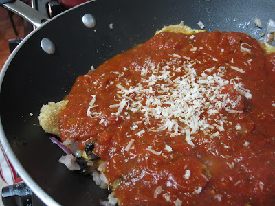 Not that Dan ever complains about what I put into his stomach or anything, but I was feeling a little guilty last night after work. There was a time — not so long ago, really — when I painstakingly planned our dinners hours in advance and eagerly looked forward to putting home-cooked meals on the table every night. That lasted…2 weeks, I think. How did I get so lazy so quickly? Anyway, I was bound and determined to whip up something delicious last night, but it was late-ish, and neither of us could wait long enough for anything really involved. So, what is quick and delicious and filling? Skillet chicken parmesan.