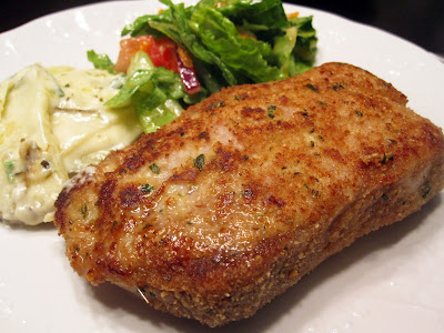 I think I prefer the savory, caramelized crust on my glazed grilled pork chops better than the Italian-style breading of these chops, but overall I would rate this dish as “tasty.” The meat was tender and juicy, and very flavorful. I’m glad I decided to salt/pepper the chops directly pre-breading though, because I think without that seasoning they would have just been bland and greasy.