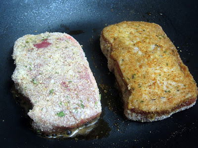 (5) Cook the chops on the skillet until lightly brown on each side.
