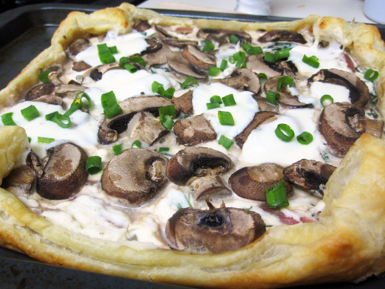 In the end, the tart was devoured by me, Dan and Emily. The crust was flaky and buttery, the cheese was gooey and savory, and the mushrooms were fragrant and delicious. So good fresh out of the oven, and surprisingly still tasty the next day…even if the crust was a tad soggy.