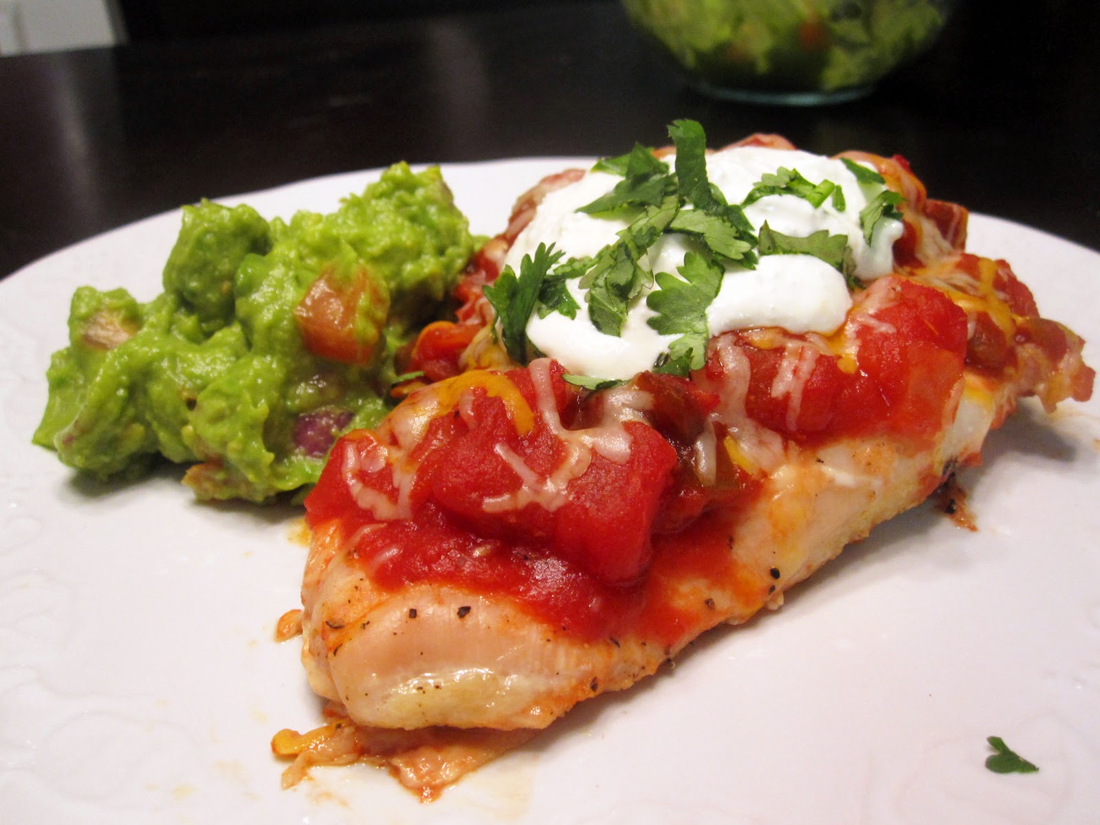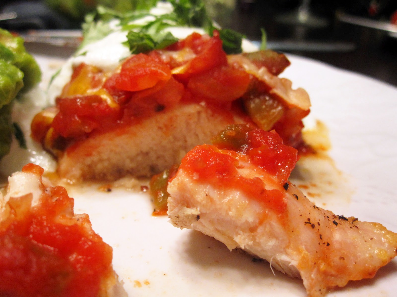 When I told Dan what we were having for dinner he was very skeptical. “So…you just poured some salsa over the chicken and baked it?” “Well, yea. But the chicken breasts are seasoned!” Truth be told, I was pretty skeptical too. I don’t even like salsa all that much! But, we were both very pleasantly surprised. The baked chicken breasts were unbelievably tender and juicy, and time in the oven took away some of the salsa’s artificial zing and replaced it with a wonderfully smooth, tangy flavor that perfectly complemented the chicken. Delicious! I just wish I had some rice or corn to go with it.