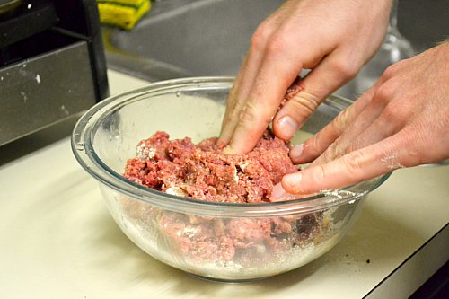 ** Note from Dan: Ground meat is really gross, and working with it by hand is not the greatest sensation. But, you have to suck it up and pack your patties firmly, or you’ll end up with a crumbly burger.