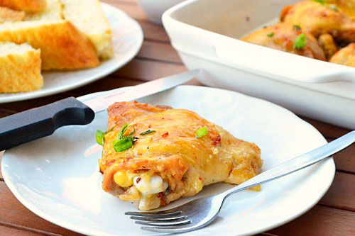 (3) Spread chicken thighs in an even layer on a large baking dish. Pour all the marinade from the bag over the chicken, then cover the baking dish with foil.